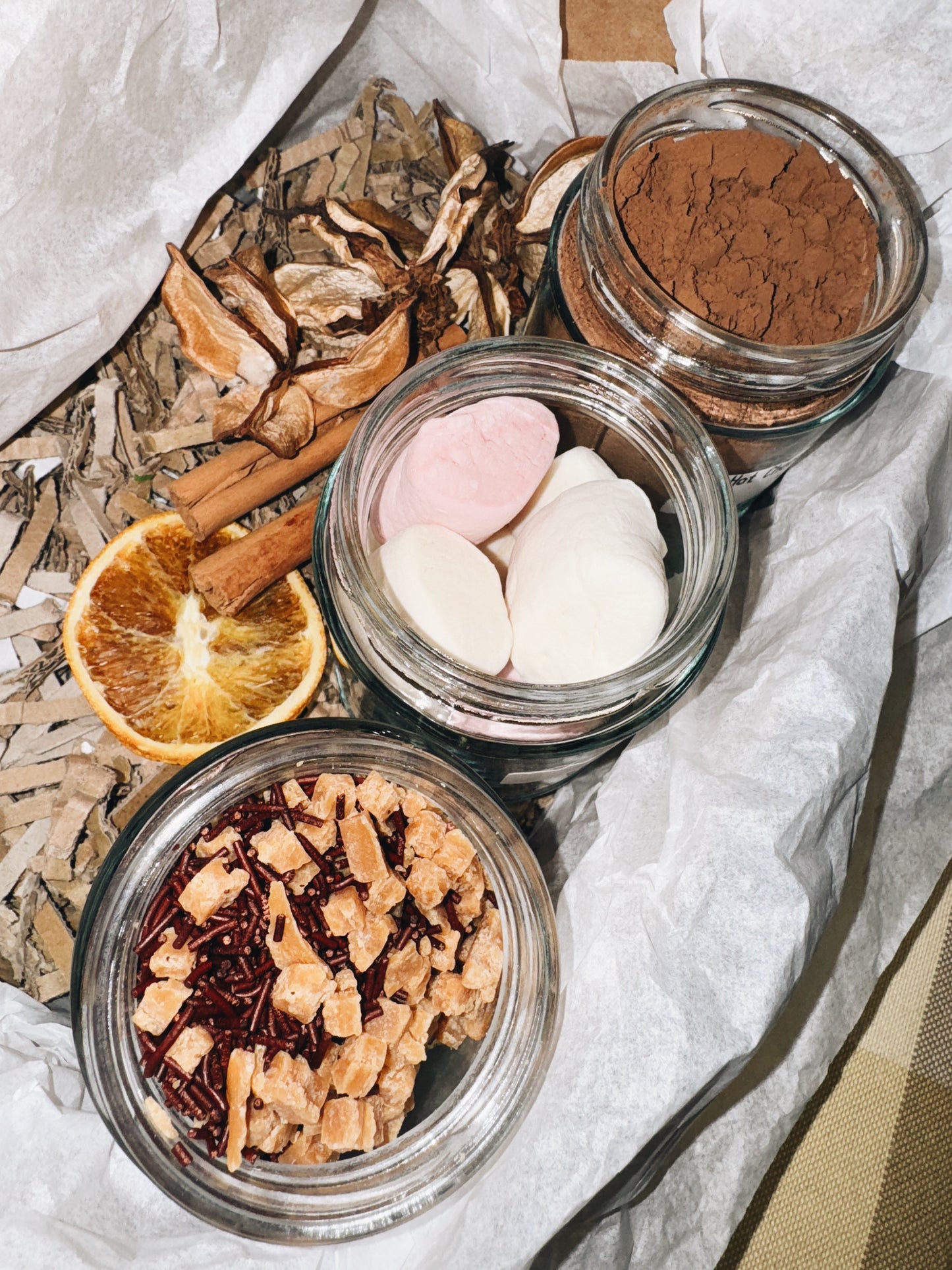 - We will measure out and pack dry goods into compostable paper bags, and liquids into re-usable bottles.