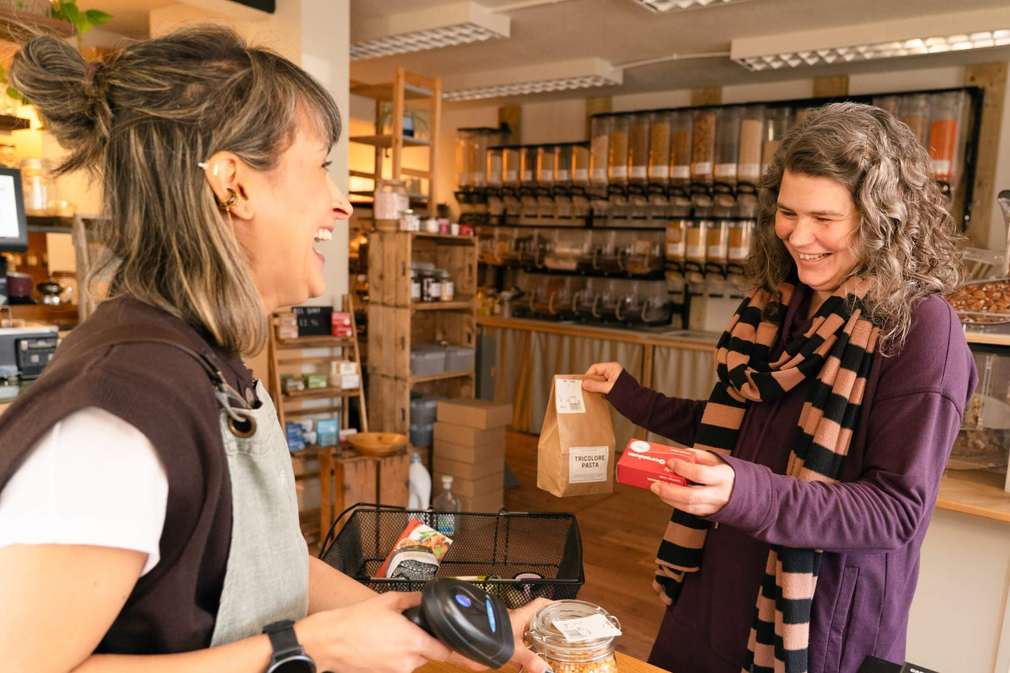 Our shop is self-serve - weigh your container, fill it with as much or as little as you like, and pay only for what you’ve taken. Of course, we’re always on hand to help or do it for you if you’d prefer.